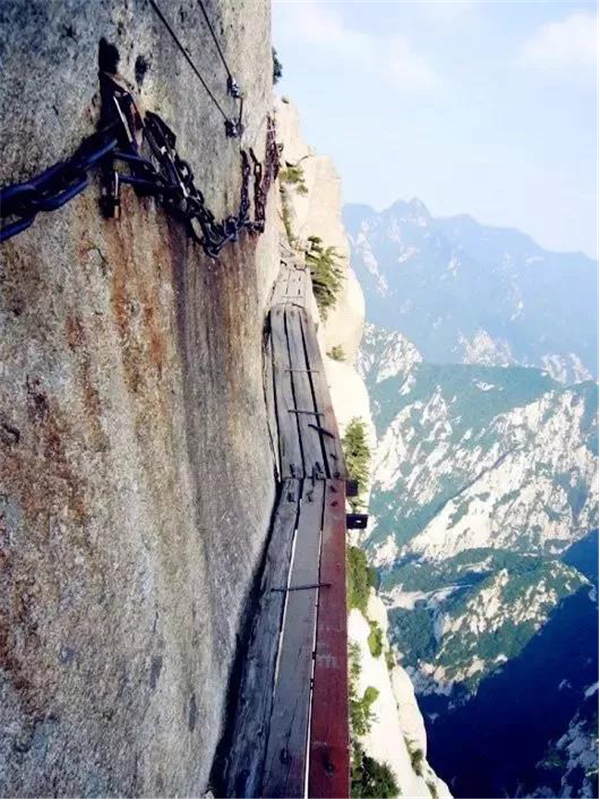 我站在華山兩塊窄窄的木板上,依靠鐵釘楔入巖石作為支撐,我的腳下,是1000米的深谷,冰雪的路面很滑。我來華山旅游純粹是因?yàn)樵诨ヂ?lián)網(wǎng)上瘋傳的一張圖片,也就是指“世界上最危險(xiǎn)的登山路”那張?,F(xiàn)在有了安全保護(hù)措施,實(shí)際上用不著擔(dān)心危險(xiǎn)了??謶致可闲念^,頭腦變得有些麻木。西安是中國的古城,在強(qiáng)盛朝代時(shí)期占有重要的歷史地位。