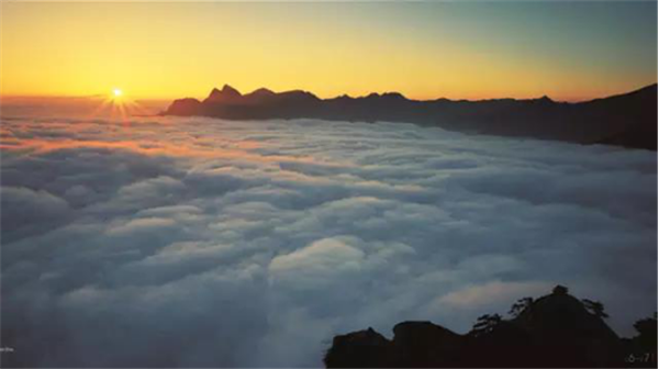 走完蒼龍嶺那長長的石階,揮汗如雨,看眼前浮現(xiàn)出平坦的五云峰,夕陽照射,霧光輝映。