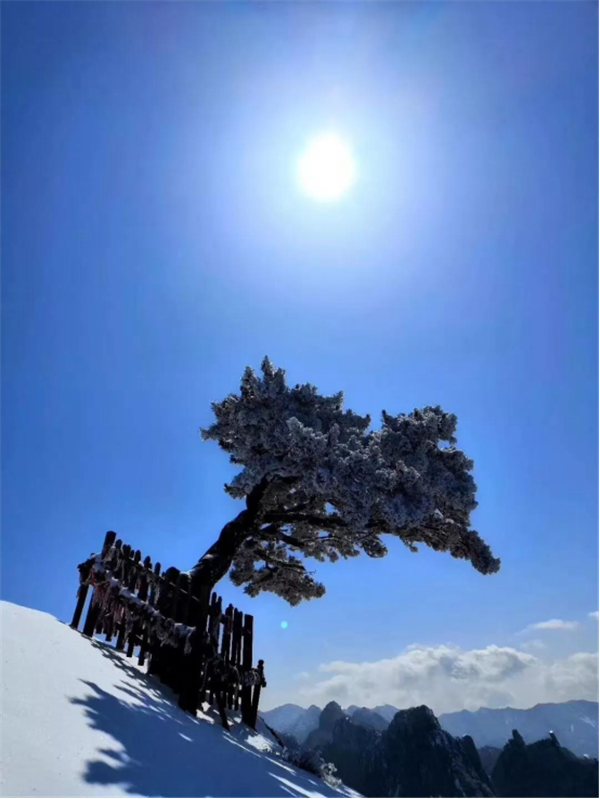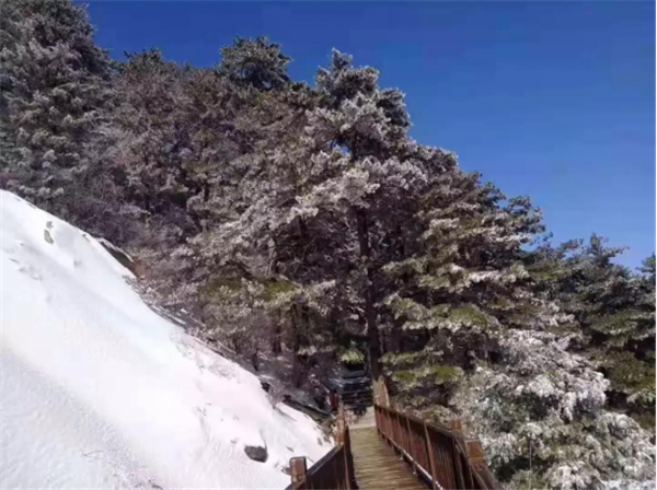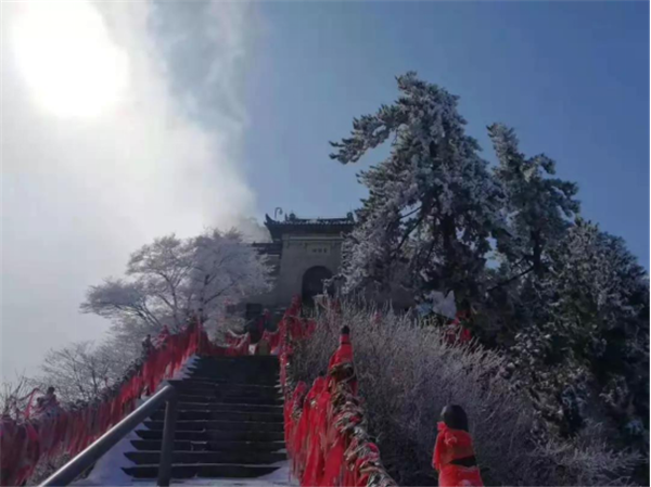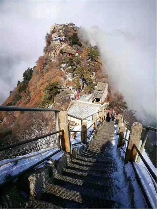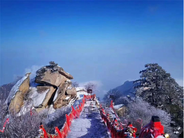 走進(jìn)雪后的華山,你會覺得自己仿佛掉進(jìn)了一個銀裝素裹的童話世界里,整個世界仿佛都被披上了一層白色婚紗。