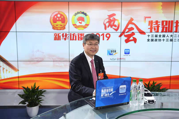 全國人大代表、奇瑞汽車股份有限公司黨委書記、董事長尹同躍,3月6日做客新華網(wǎng)2019全國兩會特別報道。新華網(wǎng) 李相博 攝