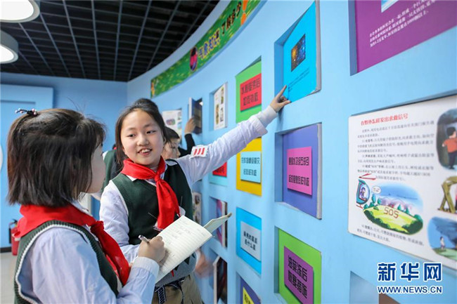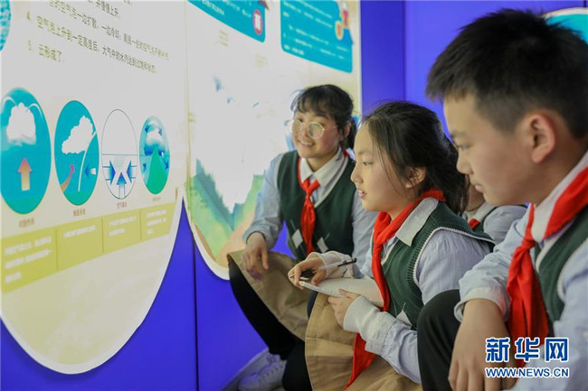 當(dāng)日,安徽省合肥市合作化南路社區(qū)組織第六十七中學(xué)小學(xué)部學(xué)生來到市氣象科普館,學(xué)習(xí)氣象科普知識(shí),迎接3月23日世界氣象日的到來。 新華社記者 曹力 攝