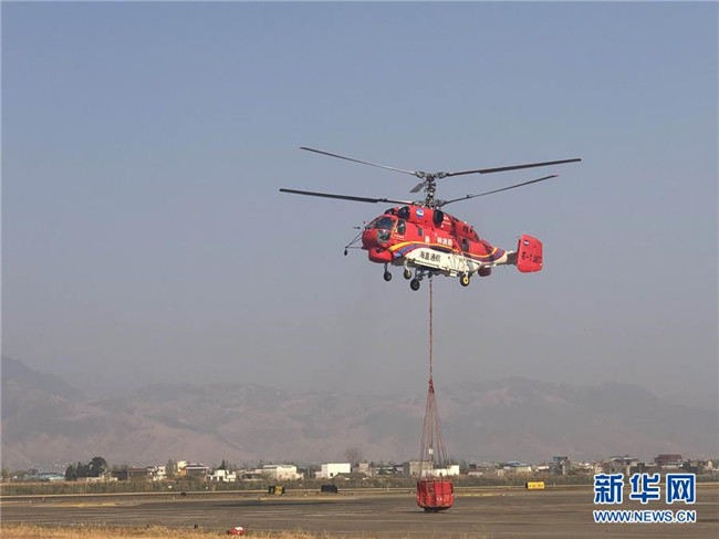 4月1日,滅火直升機(jī)從西昌機(jī)場(chǎng)起飛。新華社發(fā)(林繼平 攝)