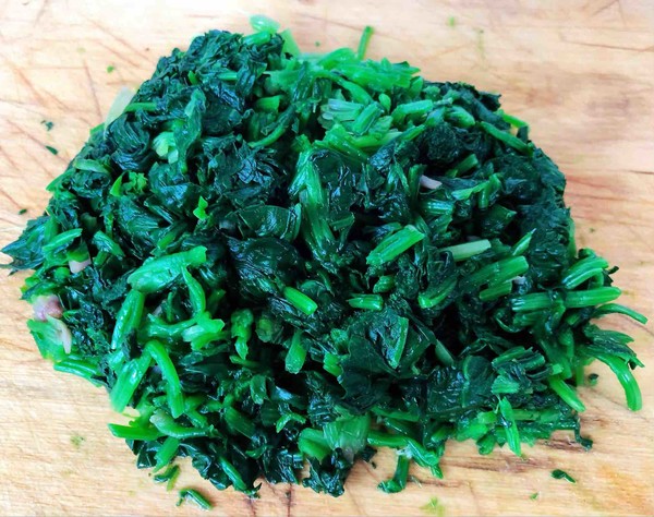 3.焯好水的菠菜立即放入冷水中過(guò)涼后瀝干水份