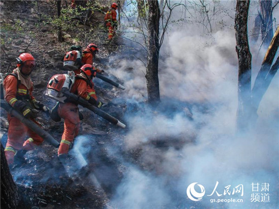 消防員到達(dá)火場后開始打火。(甘肅省森林消防總隊供圖)