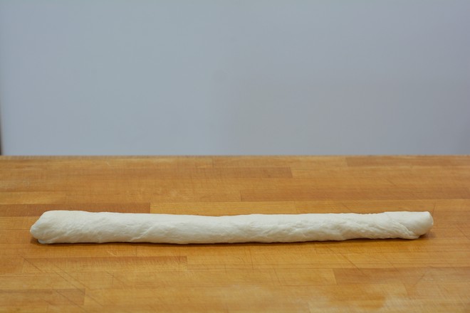 4.將餳好的面團(tuán)取出放在案板上,搓揉成長(zhǎng)條;