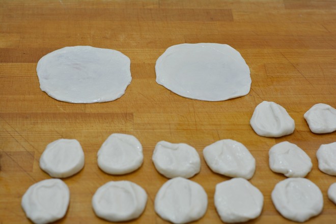 6.取兩個(gè)劑子,按扁后在其中一個(gè)上面刷一層植物油;