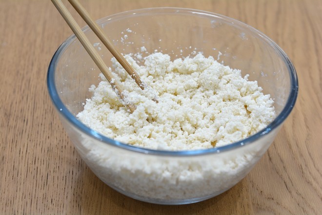 3.待手溫能接受時(shí),手揉成較光滑的面團(tuán),蒙保鮮膜餳20分鐘;