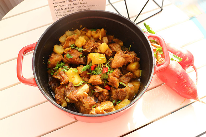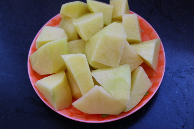 8.20分鐘后加入切好的土豆塊,小辣椒繼續(xù)燉15分鐘