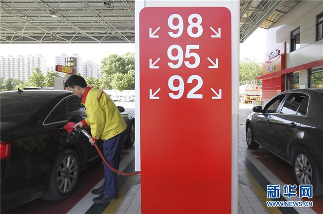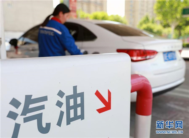 5月13日,河北省邯鄲市一家加油站的工作人員在給車輛加油。 新華社發(fā)(胡高雷 攝)