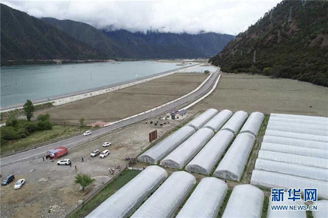 這是位于川藏公路旁的久巴村及其周邊草莓種植大棚(5月14日,無人機(jī)拍攝)。 新華社記者 李鑫 攝