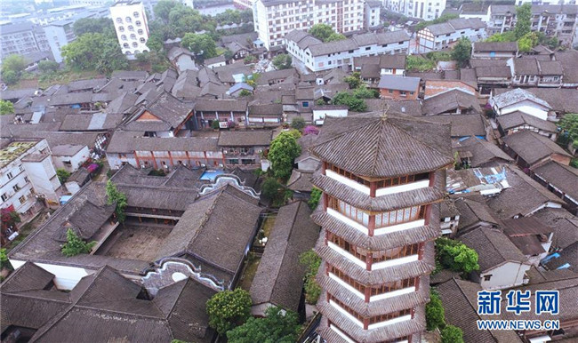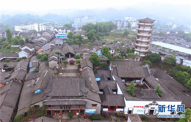 這是5月14日無人機(jī)拍攝的松溉古鎮(zhèn)。