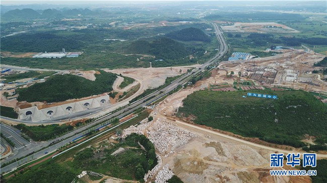 這是5月19日無人機(jī)拍攝的貴州省貴安新區(qū)“華為云”數(shù)據(jù)中心建設(shè)現(xiàn)場(chǎng)(以道路為界右)和騰訊貴安七星數(shù)據(jù)中心(左)。新華社記者 歐東衢 攝