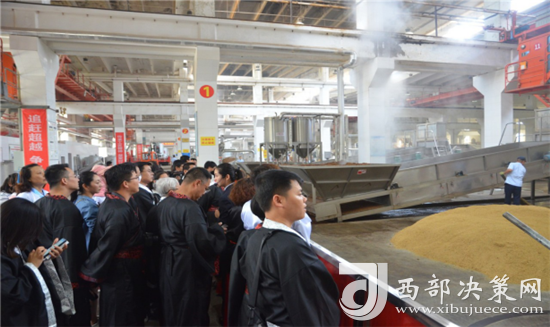 熱心觀眾和消費者及相關媒體參觀西鳳酒制酒生產(chǎn)工藝流程