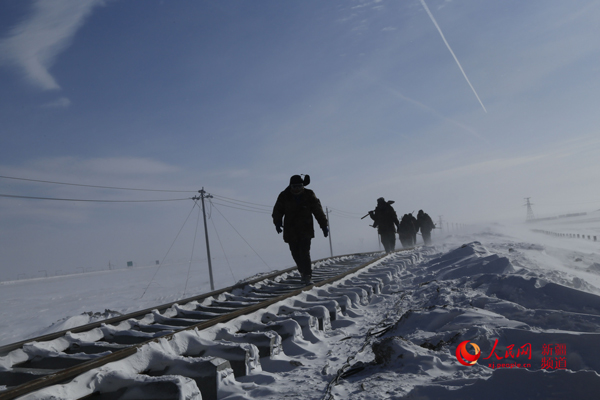 “我們是2018年11月進(jìn)入風(fēng)區(qū)作業(yè)的,這也是我第一次在暴風(fēng)雪中施工。在風(fēng)區(qū),六七級(jí)風(fēng)是家常便飯,風(fēng)雪打得臉生疼不說(shuō),新鋪的鋼軌經(jīng)常被移雪掩埋,鋪軌列車動(dòng)彈不得,只能人工清雪,清理一步走一步,被埋沒的鐵軌剛清完轉(zhuǎn)眼又被雪埋了。”葉輝說(shuō),“今年1月底的一個(gè)暴風(fēng)雪天,接送上下班的列車?yán)г诹税肼罚穼?shí)施了交通管制,施工隊(duì)被困工地。大家互相鼓勁,在風(fēng)雪中艱難跋涉8公里多,才到達(dá)營(yíng)救車??康奈恢?。春節(jié)誰(shuí)也沒有回家,都堅(jiān)守在工地上,就為再多挺進(jìn)一米。”