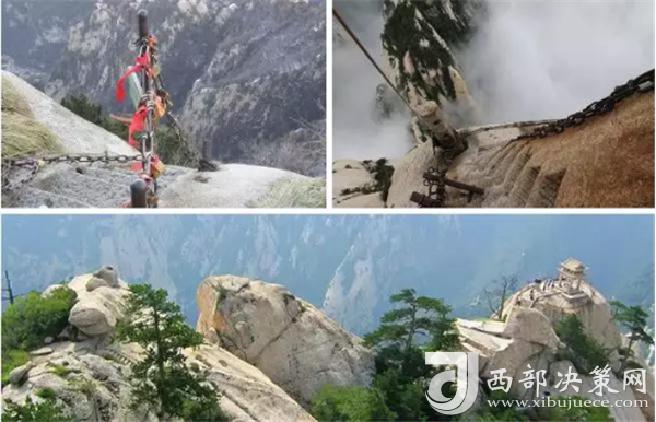 華山著名景區(qū)多達(dá)210余處,有凌空架設(shè)的長(zhǎng)空棧道,三面臨空的鷂子翻身,以及在峭壁絕崖上鑿出的千尺幢、百尺峽、老君犁溝等,其中華岳仙掌被列為關(guān)中八景之首。