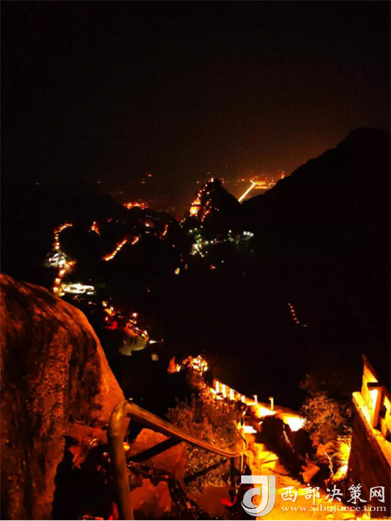 山間燈火通明,全程都有燈光指引。
