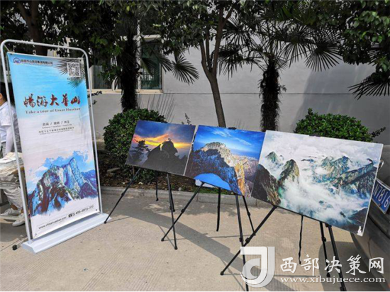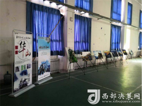 “演繹經(jīng)典”校園活動(dòng)開場(chǎng)前,舞臺(tái)前方的投影大屏循環(huán)播放華山風(fēng)光宣傳片,奇險(xiǎn)峻秀的大美華山風(fēng)光引得現(xiàn)場(chǎng)觀眾贊嘆不絕。舞臺(tái)下方分別通過(guò)華山風(fēng)光攝影展、活動(dòng)展架等形式展示了華山四季的絕美風(fēng)光,吸引眾多師生駐足觀看。