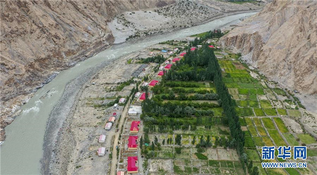 這是在新疆塔什庫(kù)爾干塔吉克自治縣大同鄉(xiāng)克其克同村拍攝的一處易地扶貧搬遷安置點(diǎn)(6月18日無(wú)人機(jī)拍攝)。新華社記者胡虎虎攝