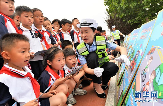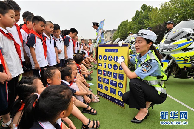 暑假將至,山東省棗莊市臺兒莊區(qū)實驗小學(xué)組織開展“暑假安全伴我行”主題安全教育活動,向?qū)W生普及交通、消防安全知識,提高學(xué)生自我防護(hù)能力。 新華社發(fā)(高啟民 攝)