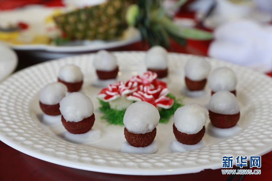 本次紅云宴對荔枝品種進行精挑細(xì)選,與多種嶺南特色食材搭配,烹制出富有嶺南意蘊和西關(guān)風(fēng)味的10道佳肴。新華網(wǎng) 林曉蕾攝