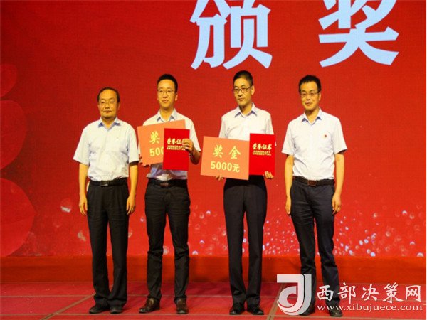 西鳳股份公司副董事長、總經(jīng)理賈智勇,西鳳集團(tuán)公司黨委副書記、紀(jì)委書記劉周虎為受表彰的先進(jìn)個(gè)人頒獎(jiǎng)
