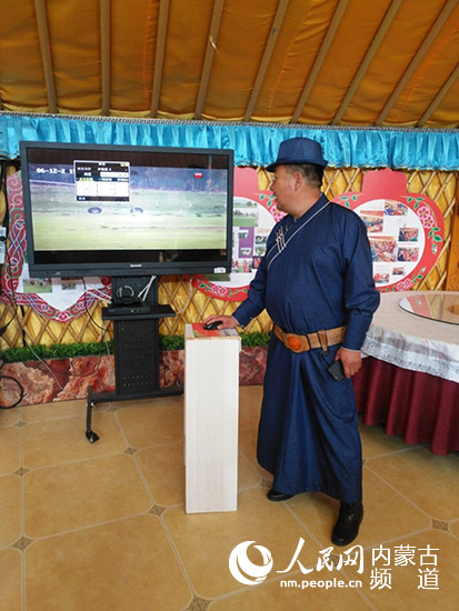 在孟克巴雅爾家的蒙古包里,“智慧放牧”設(shè)備一應(yīng)俱全。他現(xiàn)場(chǎng)向記者演示操作:“這個(gè)在手機(jī)端也可以看,拿起手機(jī)輕點(diǎn)幾下,在屏幕上緩緩滑動(dòng),羊圈各個(gè)角落就都能看到了。”