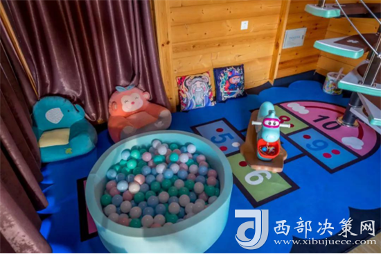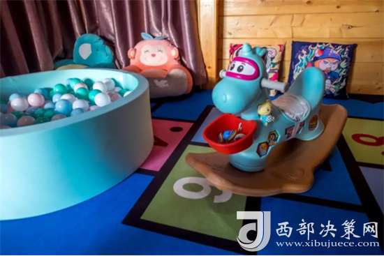 兒童休閑區(qū)以主題鮮明可愛的厚地毯作區(qū)分。休閑區(qū)有毛絨公仔、積木、卡通抱枕、小木馬、舒服的懶人沙發(fā)和海洋球池,能玩能看,可以說這里的兒童設(shè)施已經(jīng)全都“佩奇”(配齊)了。