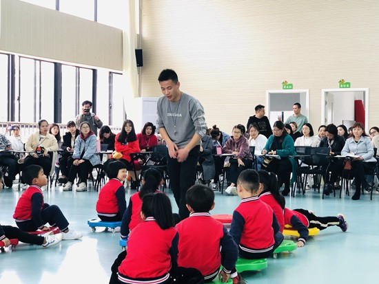 3月29日,浙江省建德市欽堂中心幼兒園教師鄭勇江在執(zhí)教大班健康活動(dòng)公開(kāi)課《趣味運(yùn)動(dòng)會(huì)》。鄭勇江供圖