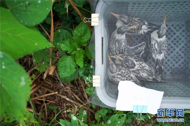 這是標(biāo)記后的鳳頭燕鷗幼鳥(7月25日攝)。新華社記者 殷曉圣 攝