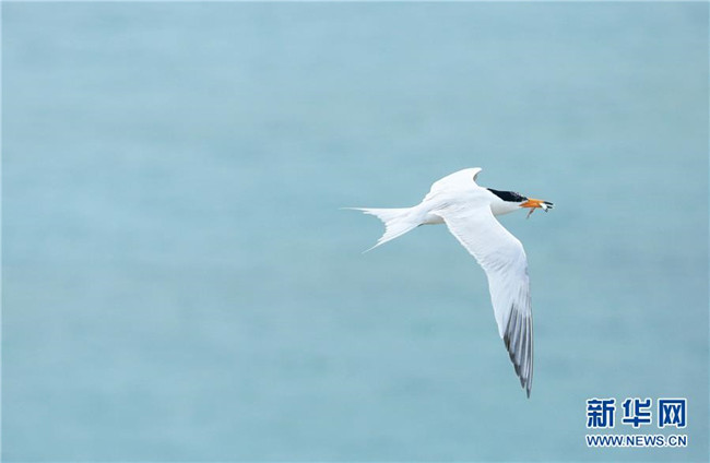 一只正在飛行的中華鳳頭燕鷗(6月22日攝)。新華社發(fā)