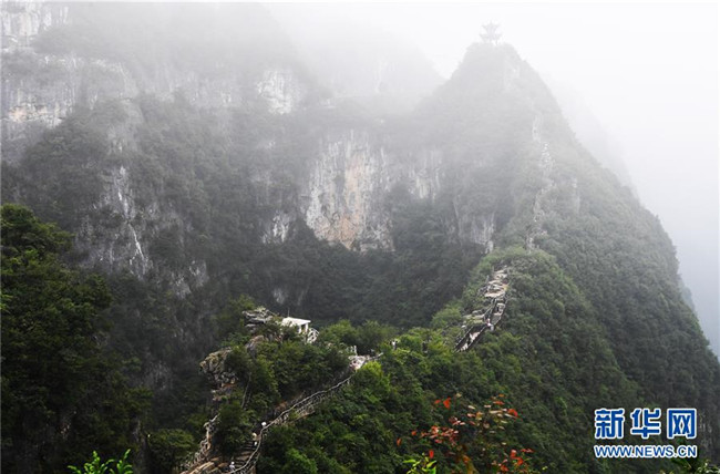這是7月30日拍攝的霧中的云陽龍缸國家地質(zhì)公園。
