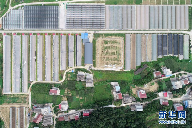 這是安康市漢濱區(qū)建民街道忠誠村的富硒農(nóng)業(yè)園區(qū)(8月8日無人機(jī)拍攝)。新華社記者 邵瑞 攝