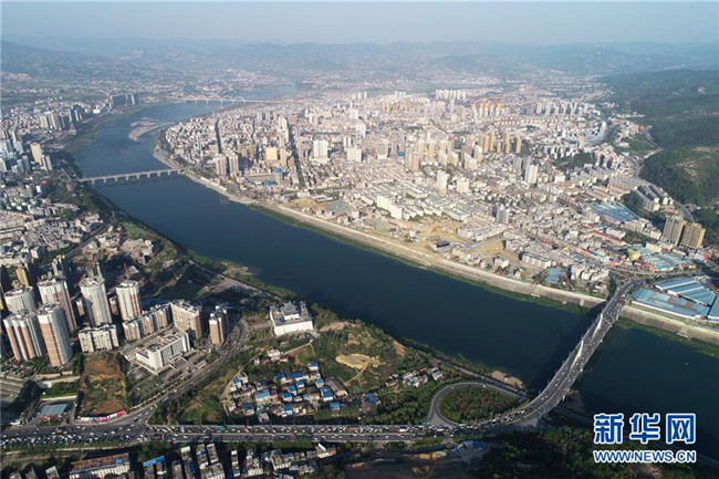 清澈的漢江從安康市穿城而過(4月7日無人機(jī)拍攝)。新華社記者 邵瑞 攝