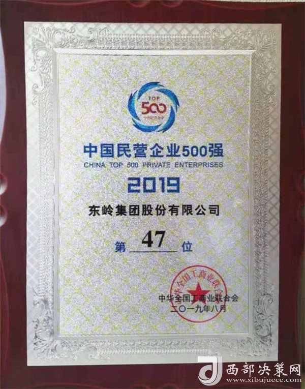 8月22日上午,由全國(guó)工商聯(lián)、青海省人民政府共同舉辦2019中國(guó)民營(yíng)企業(yè)500強(qiáng)峰會(huì)在青海召開(kāi)。東嶺集團(tuán)位列2019中國(guó)民營(yíng)企業(yè)500強(qiáng)第47位,名列陜西省民營(yíng)企業(yè)第一,這也是東嶺集團(tuán)連續(xù)18年榜上有名!同時(shí),東嶺集團(tuán)還位列2019中國(guó)民營(yíng)企業(yè)服務(wù)業(yè)100強(qiáng)第17位。