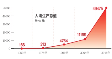 新中國成立以來,伴隨著新疆經(jīng)濟(jì)社會的快速發(fā)展,人均生產(chǎn)總值由1952年的166元到1987年邁上了1000元的平臺,2004年突破10000元大關(guān),標(biāo)志著新疆經(jīng)濟(jì)進(jìn)入了一個新的歷史階段。2018年攀升到49475元,成功由低收入地區(qū)跨入中等收入地區(qū)行列。(張永)