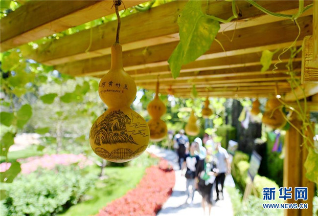 8月25日拍攝的在北京世園會(huì)甘肅園內(nèi)展出的工藝品。新華社記者張晨霖?cái)z