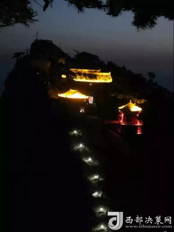 繁眼的星光,滿山的燈光,將華山映襯得一派柔和,這里的夜屏蔽了城市的喧囂與繁華,有著不屬于城市的寧靜與美麗。