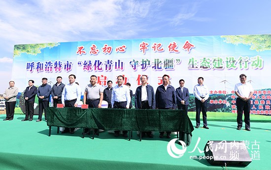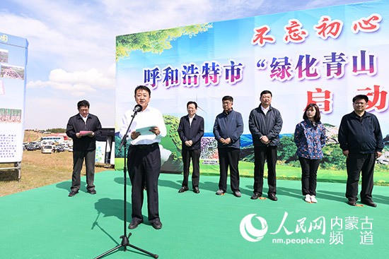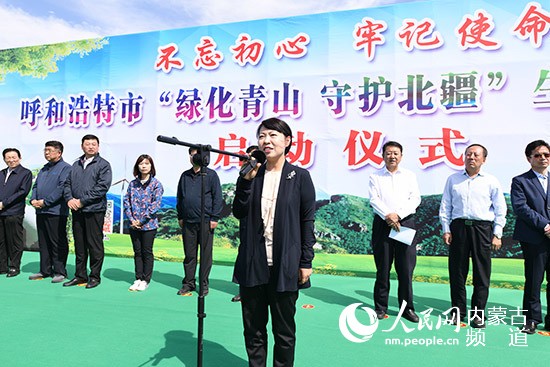 內(nèi)蒙古自治區(qū)黨委常委、呼和浩特市委書(shū)記王莉霞宣布生態(tài)建設(shè)行動(dòng)啟動(dòng)。