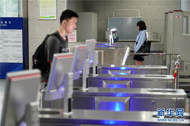 9月4日,西北工業(yè)大學(xué)學(xué)生“刷臉”進(jìn)出圖書館。