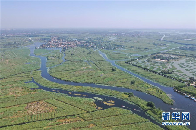這是8月31日使用無人機拍攝的白洋淀內(nèi)村莊。新華社記者 牟宇 攝