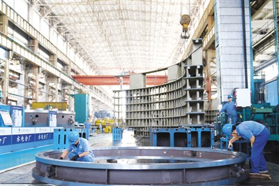 始建于1949年的濟(jì)南重工集團(tuán)有限公司近年來致力打造以軌道交通裝備產(chǎn)業(yè)為核心的智能制造與高端裝備產(chǎn)業(yè)園,老國(guó)企煥發(fā)出勃勃生機(jī)。圖為2019年5月11日,工人在查看盾構(gòu)機(jī)部件。張進(jìn)剛攝(人民視覺)