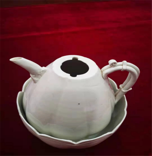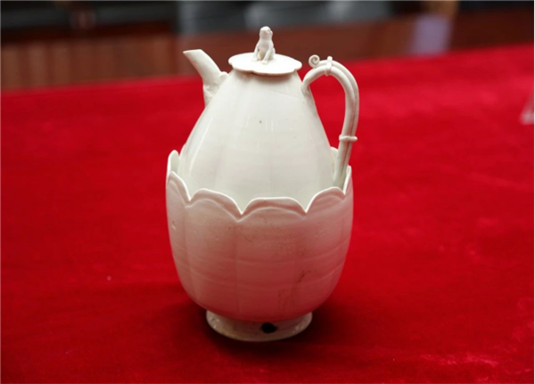 本次發(fā)現(xiàn)最具特色文物當(dāng)屬宋代官窯白瓷——白釉獅鈕瓜棱形帶花口溫碗執(zhí)壺。該款文物造型精美、器型罕見,國內(nèi)尚未發(fā)現(xiàn)同款,具有特別重要的歷史藝術(shù)和科學(xué)文化價值。經(jīng)陜西省文物鑒定中心鑒定:該文物屬國家一級,通高22.5厘米,壺口徑5厘米,底徑6.5厘米,溫碗口徑14厘米,底徑8.5厘米。該文物由蹲獅型鈕壺蓋、瓜棱形執(zhí)壺、帶鏤空足瓜腹形花口溫缽等三部分組成。從與該一級文物同時出土的慕志銘得知,該墓葬主人為宋代眉縣斜谷鎮(zhèn)下將張侍郎(相關(guān)于現(xiàn)今的鄉(xiāng)鎮(zhèn)教育專干)之父母(為合葬墓)。