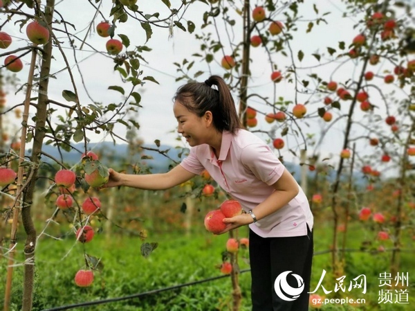 游客在桐梓縣官倉(cāng)鎮(zhèn)蘋果種植基地體驗(yàn)采摘樂趣。王欽 攝