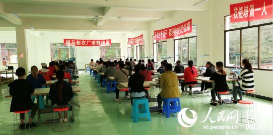 農(nóng)村貧困人口要脫貧,首先必須掌握實用技能。為解決集中安置點村民的就業(yè)問題,馬邊利用浙江省紹興市越城區(qū)東西部扶貧援助資金500萬元,修建了雪口山扶貧車間,引進(jìn)浙江紹興勇大針紡工藝有限公司投資建設(shè)服裝廠,讓貧困戶提高技能,就近就業(yè)。