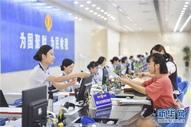 國(guó)家稅務(wù)總局泉州市稅務(wù)局豐澤街辦稅服務(wù)廳的工作人員在新辦企業(yè)服務(wù)窗口為納稅人辦理業(yè)務(wù)(2018年9月13日攝)。國(guó)地稅合并后,國(guó)家稅務(wù)總局福建省稅務(wù)局在全省推行新辦納稅人“套餐式”服務(wù)。 新華社記者 宋為偉 攝