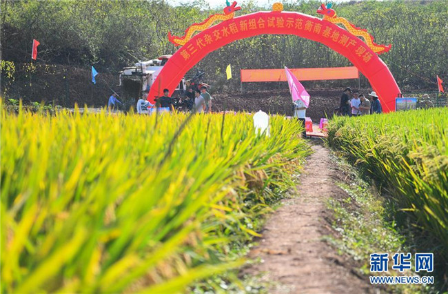 這是第三代雜交水稻新組合試驗示范衡南基地測產(chǎn)現(xiàn)場待收割的水稻(10月21日攝)。 新華社記者 陳澤國 攝