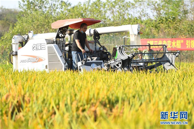 由“雜交水稻之父”袁隆平團隊研發(fā)的第三代雜交水稻10月21日至22日首次公開測產(chǎn)。經(jīng)測產(chǎn)專家組評定,最終畝產(chǎn)為1046.3公斤。