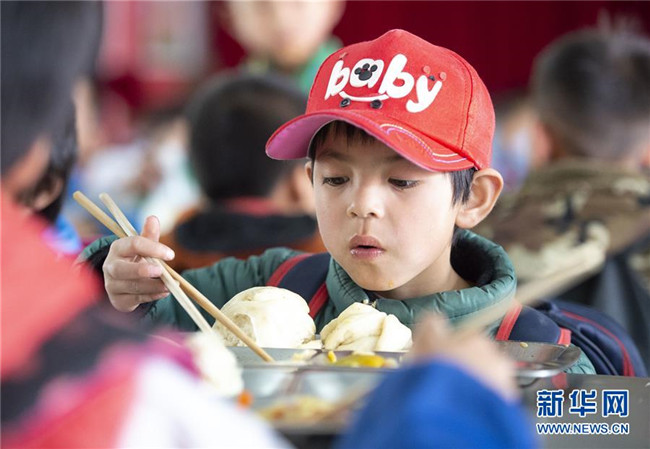 自實(shí)施農(nóng)村義務(wù)教育學(xué)生營(yíng)養(yǎng)改善計(jì)劃以來,寧夏回族自治區(qū)積極為農(nóng)村學(xué)子提供免費(fèi)的營(yíng)養(yǎng)餐。從去年開始,寧夏固原市西吉縣的免費(fèi)營(yíng)養(yǎng)午餐迎來了升級(jí)換代,從原來的一道燴菜變成了如今的兩素一葷,餐具由餐桶換成了餐盤。在保證營(yíng)養(yǎng)膳食搭配的同時(shí),增加了學(xué)生的自主選擇性。從“吃得飽”到“吃得好”,升級(jí)換代的營(yíng)養(yǎng)餐得到了廣大學(xué)生認(rèn)可。 新華社發(fā)(楊植森 攝)