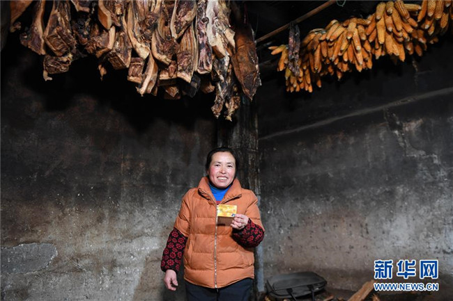 湖南龍山縣翻身村村民李紅云在展示自家的儲蓄卡(3月10日攝)。新華社記者 薛宇舸 攝