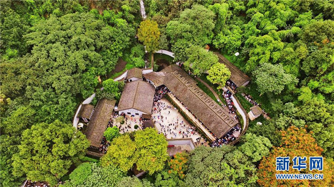游客參觀重慶渣滓洞紅巖革命景區(qū)(2018年10月3日無人機(jī)拍攝)。新華社記者 王全超 攝